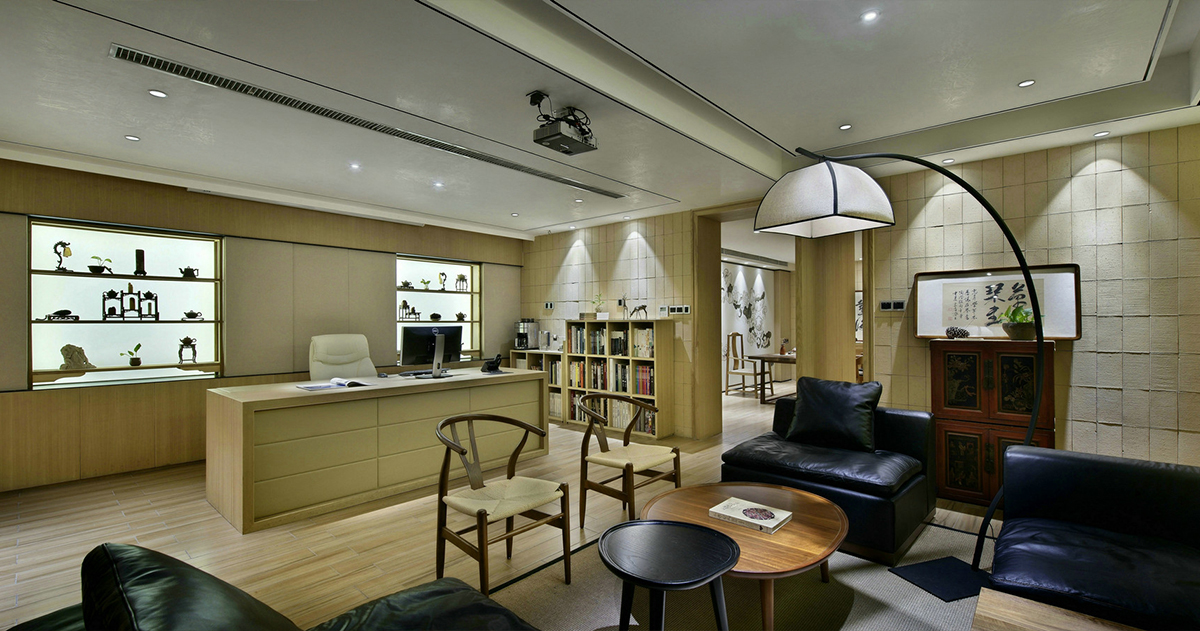 大偉實業(yè)是一家經(jīng)營工藝品配飾的公司,本空間以木為元素,從地面、墻體及屏風都運用了木,巧妙的將其融合到一起。將中國風的“禪”意體現(xiàn)的淋漓盡致,古典與現(xiàn)代的完美結(jié)合,創(chuàng)造高品味的現(xiàn)代中式辦公空間。